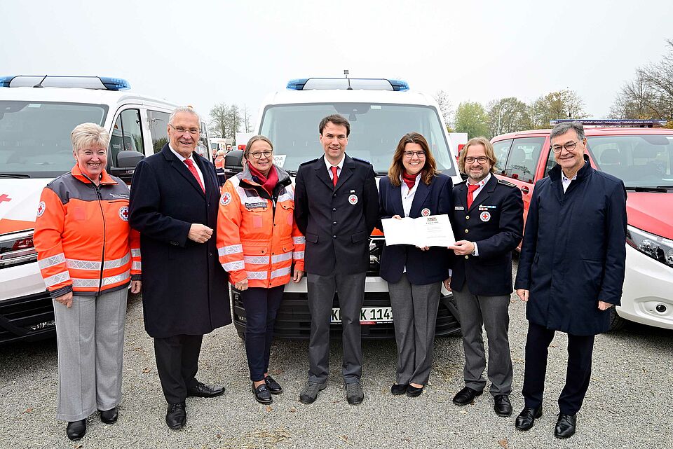 Am 9. November übergab Bayerns Innen- und Katastrophenschutzminister Joachim Herrmann in Gunzenhausen mehr als 75 neue Fahrzeuge an Hilfsorganisationen und Feuerwehren. 50 der Fahrzeuge wurden vom Freistaat Bayern finanziert, 25 vom Bund. Matthias Straub, Kreisbereitschaftsleiter des BRK Oberallgäu, nahm stellvertretend für den Kreisverband einen neuen Mannschaftstransportwagen (MTW) in Empfang.