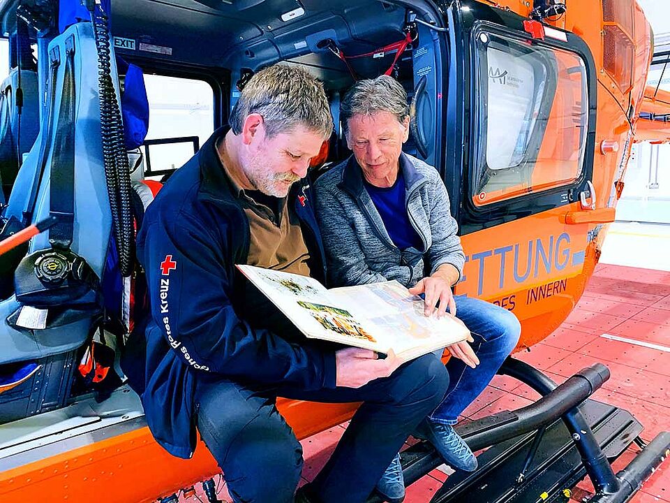 Über einen Umstand berichten Hägele und Bumann eher nebenbei: Alle beide wären bei diesem Flug eigentlich gar nicht dabei gewesen. Ulrich Hägele war ganz kurzfristig für einen Kollegen eingesprungen („das war damals nicht unüblich“) und Rainer Bumann hätte an dem Tag ursprünglich gar keinen Dienst gehabt. „Aber ich hatte mit einem Kollegen Schicht getauscht, weil ich eine Woche später nach Kenia fliegen wollte. Stattdessen war ich dann 5 Tage im künstlichen Koma, 14 Wochen im Krankenhaus und danach 10 von insgesamt 48 Wochen in Reha.“ Bei Ulrich Hägele verlief die Genesung wesentlich schneller. „Auch ich habe erst ein paar Tage später meine Umwelt wieder bewusst wahrgenommen. Aber anders als Rainer hatte ich im Wesentlichen nur ein paar gebrochen Rippen. Ich ließ mich sofort von Augsburg nach Kempten verlegen, denn dort war meine Frau und meine drei Kinder, die damals 5, 10 und 13 Jahre alt waren.“ Noch während seines eigenen Krankenhausaufenthaltes besuchte er seinen Kollegen. „Als Uli plötzlich an meinem Krankenbett stand, hat mich das sehr berührt und gefreut“, so Rainer Bumann. Hägele selbst konnte seine Arbeit bald wieder aufnehmen, kehrte gut zwei Monate nach dem Unglück wieder in die Luftrettung zurück. „2015 habe ich altersbedingt damit aufgehört, aber Landrettung fahre ich immer noch ein-, zweimal im Monat“, so der heute 67-Jährige. „Ich hatte großes Glück. Auch dank meiner Erinnerungslücke konnte ich mein Leben fast normal weiterführen.“ Lediglich beim Skifahren meide er seither ganz steile Hänge, „aus Angst vor einem Sturz und den folgenden Schmerzen. Das kannte ich vorher nicht“, sagt er. Körperlich machen ihm bis heute Wirbelsäulenprobleme zu schaffen und ein Auge, das damals einen Schlag abbekommen hatte.