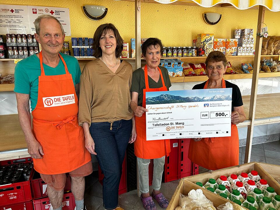 Die Chorgemeinschaft Sankt Mang veranstaltet schon seit mehr als 30 Jahren alljährlich ein Weihnachtskonzert, den „Sankt Manger Advent“. Einen Großteil der Einnahmen spenden die Mitglieder stets an einen guten Zweck, vornehmlich im eigenen Stadtteil. Nun übergaben die Verantwortlichen einen Spendenscheck in Höhe von 500 Euro an den Tafelladen des BRK Kreisverband Oberallgäu in St. Mang. „Wir sind überzeugt, dass unsere Spende bei Ihnen und dem ganzen Team in guten Händen ist, und dass damit den Menschen, die die Tafel besuchen, auf direktem Weg geholfen werden kann“, so Leo Ebenhoch, Vorstandsmitglied der Chorgemeinschaft.