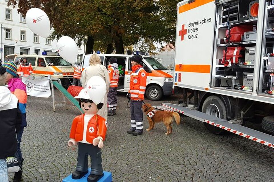 „Wir hatten die seltene Gelegenheit die Bereitschaft, das Jugendrotkreuz, die Hundestaffel und die Wasserwacht gemeinsam an einem Ort zu präsentieren“, freute sich Sabine Blodau, Vorsitzende der Kreiswasserwacht Oberallgäu. Den Anlass für diesen ganz besonderen Aktionstag gab die diesjährige Kooperation des Deutschen Roten Kreuzes mit Playmobil und Galeria Kaufhof.