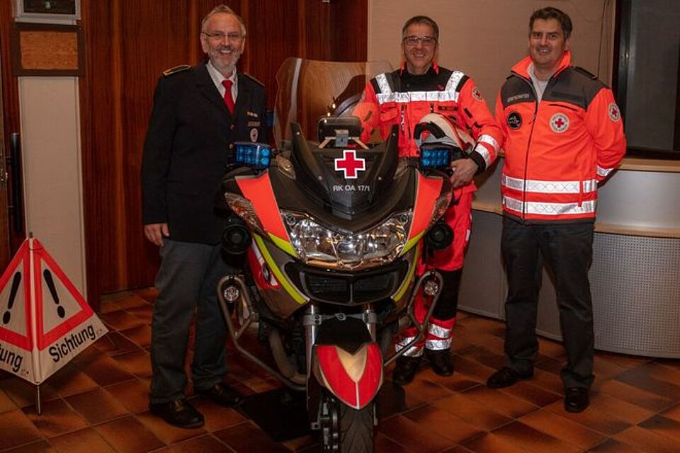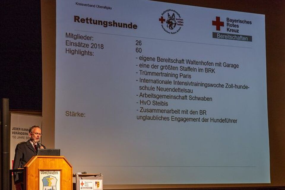 Bei der Motorradstreife mit 6 Mitgliedern wurden 552 Einsätze gezählt. Das schnelle, wendige und von hoch qualifiziertem Personal besetzten Ret-tungsmittel war häufig vor dem regulären Rettungsdienst am Einsatzort und konnte somit das sogenannte therapiefreie Intervall zu Gunsten der Betroffenen deutlich verkürzen. Die Rettungshundestaffel, den Hundlern, wie sie ihr Leiter Prof. Tiebel liebevoll nennt, war bei 60 Einsätzen weit über die Grenzen des Kreisverbandes hinaus im Einsatz. Die 26 Mitglieder und ihre vierbeinigen Helfer stellen damit eine der größten Staffeln in Bayern dar. Highlight war eine Trümmersuchübung in Paris. Ihre Stärke liegt laut Prof. Tiebel in ihrem enormen Engagement. PUMA – Presse- und Medienarbeit, eine neu gegründete Arbeitsgruppe stellte klar, dass sie nicht als Redaktion zu betrachten ist, sondern als ein Netzwerk der Oberallgäuer Bereitschaften im Roten Kreuzes zur Verfügung steht. „Wir wollen Wahrnehmung und Stärke des BRK-Kreisverbandes Oberallgäu wirkungsvoll darstellen“. „Die Öffentlichkeit weiß häufig nicht, was und wie viel die Ehrenamtlichen Jahr für Jahr rund um die Uhr leisten“, so Matthias Gantner, Mitglied der Gruppe. Zum Abschluss bedankte sich die Kreisbereitschaftsleitung bei allen, für die geleistete Arbeit mit einem Imbiss bei gemütlichem Beisammensein.