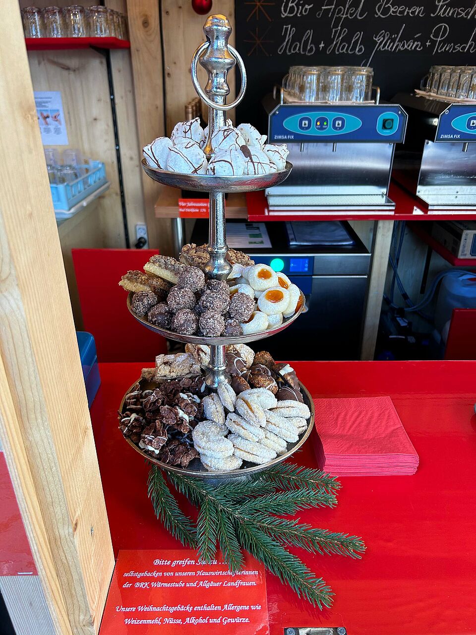 „Zum Start des Weihnachtsmarktes waren stolze 120 kg Plätzchen gebacken“, freut sich Markus Wille vom BRK Oberallgäu. „Das reicht allerdings noch lange nicht. Rund 20.000 Stück hand- und hausgemachter Plätzchen werden bis zum 22. Dezember benötigt. Denn keiner unserer Kundinnen und Kunden kann den süßen Verlockungen auf der Etagere am Tresen widerstehen.“ Er dankt den Bäckerinnen von Herzen: „Ohne Ihr großartiges Engagement wäre der erfolgreiche Glühwein-Verkauf zu Gunsten der Tafel Kempten und der BRK-Wärmestube nicht das Gleiche.“