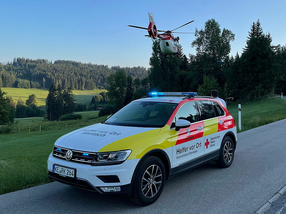 Die sogenannten Helfer vor Ort, kurz HvO, sind speziell ausgebildete Ersthelferinnen und Ersthelfer der örtlichen BRK-Bereitschaften. Sie werden immer dann alarmiert, wenn sie den Einsatzort schneller erreichen können als der reguläre Rettungsdienst - etwa im Fall entlegenerer Ortschaften - oder wenn alle anderen Rettungsmittel in anderen Einsätzen gebunden sind. Ihre Aufgabe ist es, die Zeit bis zum Eintreffen des Rettungsdienstes oder Notarztes zu überbrücken und lebensrettende Sofortmaßnahmen einzuleiten. Hierfür steht jedem HvO-Standort eine vollständige Notfallausrüstung zur Verfügung.