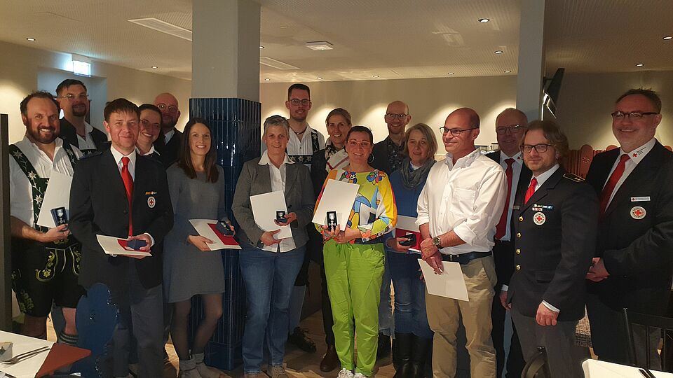 Für ihr langjähriges Engagement beim Bayerischen Roten Kreuz (BRK) im Kreisverband Oberallgäu wurden 20 Ehrenamtliche Helferinnen und Helfer durch Landrätin Indra Baier-Müller im Auftrag vom bayerischen Innenminister Joachim Herrmann mit dem staatlichen Ehrenzeichen am Bande in Silber und Gold ausgezeichnet.