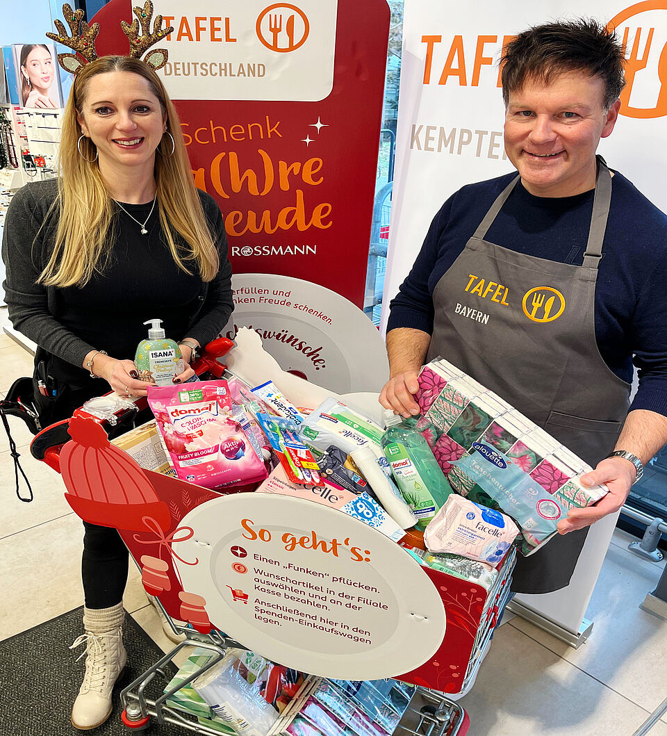 Kempten – Die Drogeriemarktkette Rossmann hatte in der Vorweihnachtszeit die bundesweite Spendenaktion „Schenk wa(h)re Freude“ zu Gunsten der Tafel gestartet. Auch die Kemptener Filialen im Fenepark und in der Memminger Straße beteiligten sich daran.Kundinnen und Kunden konnten beim Einkauf gezielt Hygieneartikel für die Tafel Kempten erwerben.