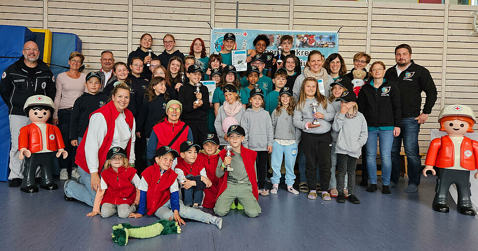 „Ein zentraler Bestandteil unserer Jugendarbeit ist die altersgerechte und spielerische Vermittlung von Erste-Hilfe-Kenntnissen“, erklärt Ramona Gorbach, die stellvertretende Leiterin des JRK Oberallgäu. „Ein Highlight sind die jährlichen Kreisspiele, bei denen Kinder und Jugendliche aus verschiedenen Ortsgruppen zusammenkommen, um ihr Wissen in freundschaftlicher Atmosphäre miteinander zu messen.“ Seit Jahren richten die benachbarten Kreisverbände Lindau und Oberallgäu diesen Wettbewerb gemeinsam aus. Heuer fand er in Heimenkirch (Landkreis Lindau) statt.