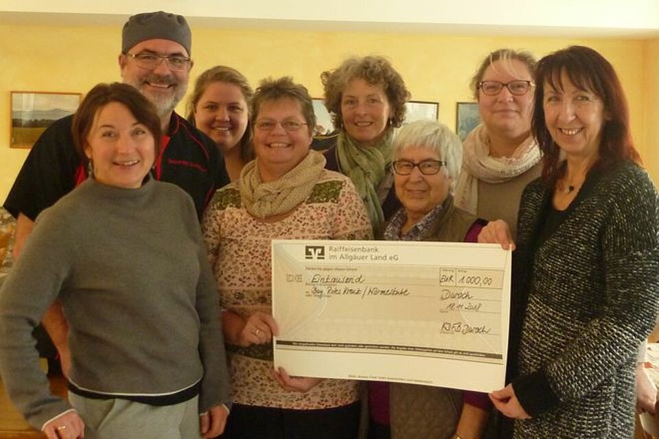 Die Faschingsriege des Frauenbundes Durach überreichte eine Spende in Höhe von 1000 Euro an die Wärmestube des BRK Kreisverbands Oberallgäu.