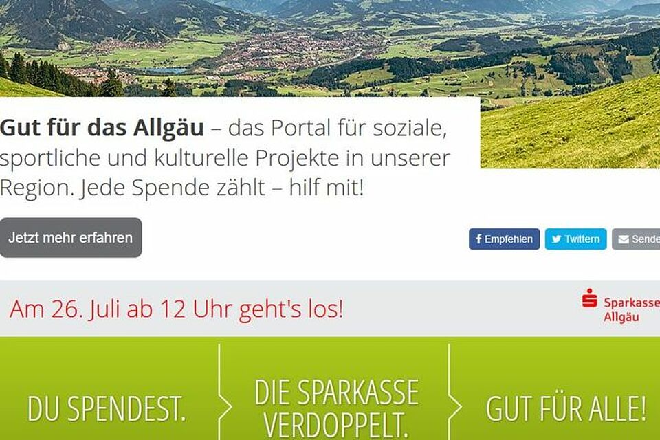 gut-fuer-das-allgaeu.de gespendet werden. Im Aktionszeitraum erscheint der Hinweis auf die Verdoppelung der Spenden auf der Projektseite. Zahlungen, die über betterplace.org oder unser Sparkassenkonto eingehen, werden nicht verdoppelt.