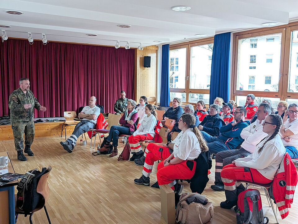 Die Teilnehmenden stammten aus dem Haupt- und Ehrenamt: aus den Oberallgäuer BRK-Bereitschaften, der Wasserwacht, dem Jugendrotkreuz, der Bergwacht sowie aus sozialen Angeboten wie Kleiderladen, Wärmestube und Tafel. Der Helfertag bot ihnen Raum für persönliches Kennenlernen, kollegialen Austausch über die verschiedenen Dienste hinweg sowie ein vielfältiges Programm aus Vorträgen, Übungen und Fortbildungen.