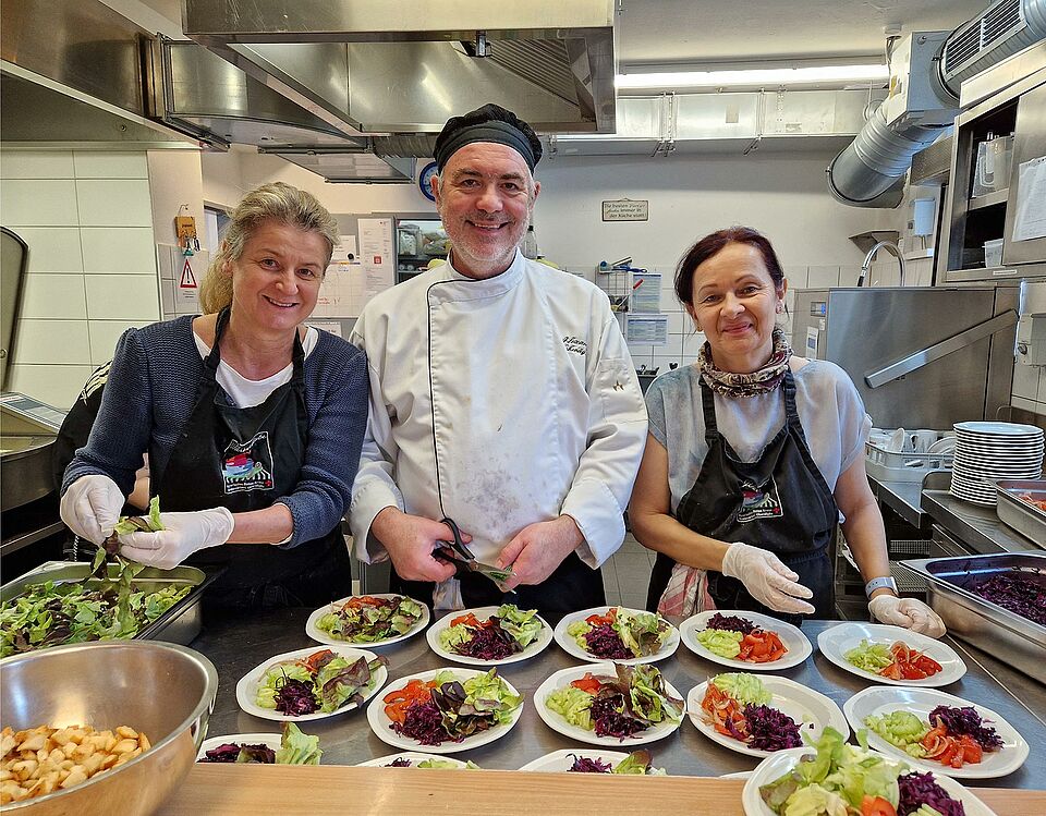 Am 09.Februar 2025 stand Sie gemeinsam mit Alexander Schwägerl, dem Kreisgeschäftsführer des BRK Oberallgäu, in der Küche der Einrichtung, um die Gäste zu bekochen. Diese wurden mit einem Gaumenschmaus aus Schweinebraten mit selbstgemachten Kartoffelknödeln, Bayrischkraut und Salat verwöhnt. Im Anschluss ließ sie sich bei einer kurzen Führung durch die Wärmestube die Arbeit der Einrichtung näher erklären. Ihr großes Interesse war deutlich spürbar – ebenso wie ihr Wunsch, die Kochaktion zu wiederholen.