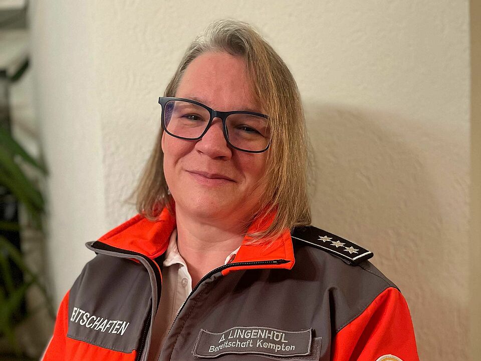 „Ich bin seit 1996 ehrenamtlich beim BRK Oberallgäu. Angefangen habe ich in der Wasserwacht. Später kam ich über meinen Mann zur BRK-Bereitschaft Kempten, deren stellvertretende ehrenamtliche Leiterin ich momentan bin. Zudem bin ich ehrenamtliche Leiterin der Schnelleinsatzgruppe Verpflegung. Hauptberuflich arbeite ich seit 2013 als Hauswirtschafterin in der Wärmestube“, berichtet Alexandra Lingenhöl. Ihre Woche besteht in aller Regel aus drei Tagen Arbeit in der Wärmestube und durchschnittlich weiteren drei Abenden ehrenamtlicher Arbeit für die BRK-Bereitschaft Kempten - plus die Wochenenden, wenn größere Sanitätsdienste sind. „Was ich hier tun und bewegen kann, macht mir unglaublich viel Spaß“, strahlt die sympathische 47-Jährige. Das Ehrenamt liegt der ganzen Familie am Herzen. Alexandra Lingenhöls Ehemann ist Leiter der BRK-Bereitschaft Kempten und auch die beiden gemeinsamen Kinder sind „quasi mit dem Roten Kreuz aufgewachsen“ und selbst ehrenamtlich aktiv.
