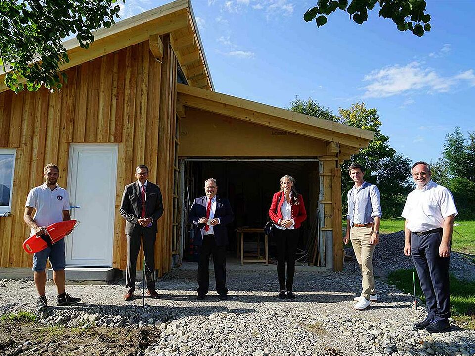 Als nun ein neuer Wasserwachtstützpunkt in Moosbach notwendig wurde, unterstützte die Sparkasse Allgäu den Neubau mit einer großzügigen Spende in Höhe von 5.000 Euro. Alexander Schwägerl, Kreisgeschäftsführer des BRK im Kreisverband Oberallgäu: „Wir freuen uns sehr über diese Unterstützung. Sie ist eine große Hilfe und ein wunderbares Zeichen der Wertschätzung für die wichtige - und keineswegs selbstverständliche - ehrenamtliche Arbeit unserer Wasserwacht-Mitglieder.“ Diese erledigten viele der Arbeiten selbst, mit tatkräftiger Unterstützung der Gemeinde Sulzberg.