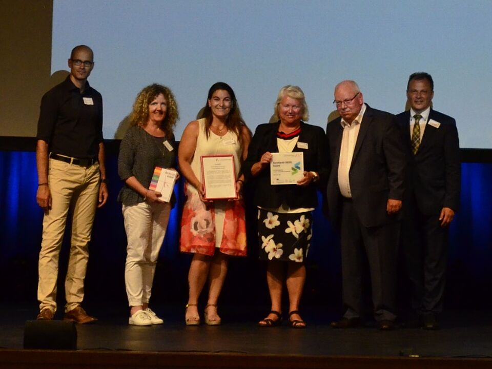 Erstmalig wurde die Staatliche Realschule an der Salzstraße Kempten mit dem Berufswahl-SIEGEL der Landesarbeitsgemeinschaft SCHULEWIRTSCHAFT Bayern ausgezeichnet. In einer Feierstunde in der Lindauer Inselhalle nahmen Direktorin Elisabeth Schindele und Bettina Bayer, Mitglied der Schulleitung und federführende Projektleiterin, die Urkunde entgegen. „Ein hohes Engagement, ein vielfältiges Angebot an Studien- und Berufsorientierungsmaßnahmen sowie ein stabiles Netzwerk mit externen Partner“, begründet Richard Vanoni von der Sparkasse Allgäu und Mitglied im Juryteam von SCHULEWIRTSCHAFT die Entscheidung.