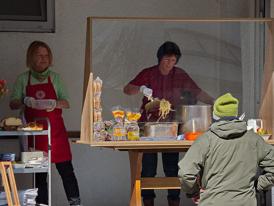 Ein großer Dank geht an unsere Mitarbeitenden und aus aktuellem Anlass ganz speziell an die Firma Hartmann aus Dietmannsried. Letztere stellte uns kostenlos eine Schutzwand für die Essensausgabe zur Verfügung - damit HelferInnen und Gäste gesund bleiben. Dieses Modell haben auch Apotheken erhalten. Dafür ein herzliches „Vergelt´s Gott“!
