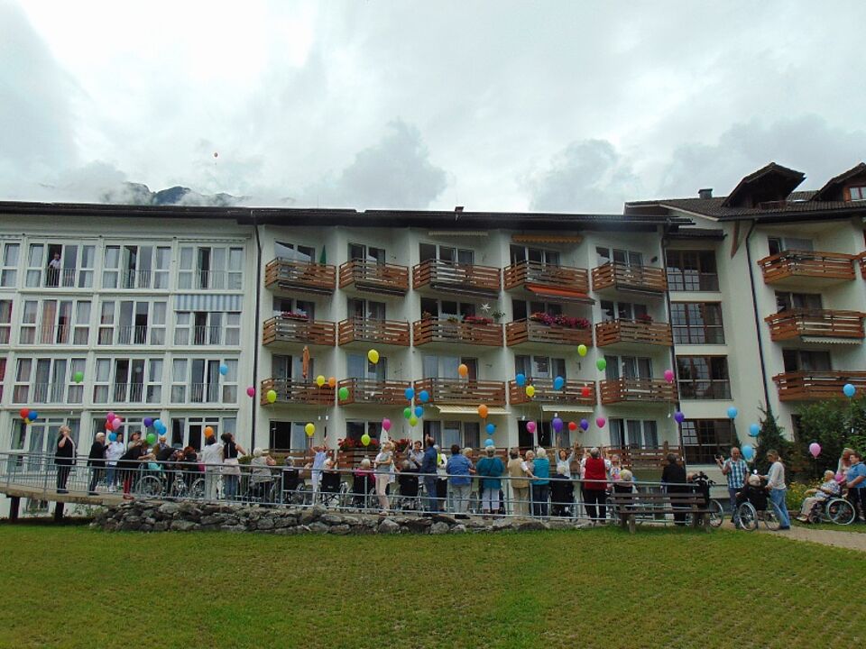 Große Freude machte den Gästen auch das Gewinnspiel, bei welchem die Anzahl verschiedener Süßigkeiten in Einmachgläsern geschätzt werden musste. Ein weiterer Programmhöhepunkt war das gemeinsame Luftballon steigen lassen. Fast zeigte sich ein bisschen die Sonne, als jeder Besucher des Festes seinen bunten Ballon mit Grußkarte in den Himmel schickte. Nun ist die Spannung groß, ob der eine oder andere Absender im Haus der Senioren seine Luftpost zurückerhalten wird.
