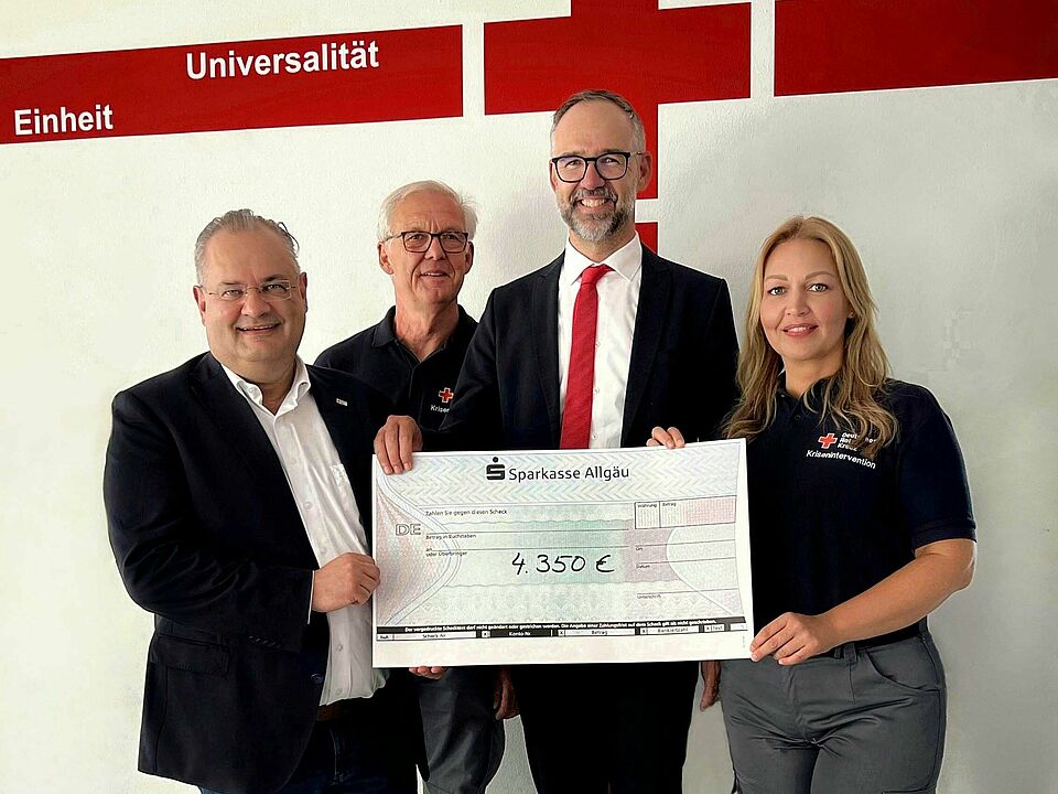 Nach schweren Unglücken, einem Unfall mit Todesfolge, einem Suizid, Gewaltverbrechen oder anderen psychisch traumatisierenden Ereignissen, Notfällen oder Katastrophen sind die Mitarbeiterinnen und Mitarbeiter der Krisenintervention ein Fels in der Brandung. Sie stehen den unverletzten Zeugen, Angehörigen und auch Rettungskräften in den ersten Stunden nach dem Geschehnis zur Seite. „Ich habe höchsten Respekt vor Ihnen und Ihrer Arbeit“, so Christian Böck, Marktbereichsleiter Sonthofen bei der Sparkasse Allgäu. Er übergab den Teamleitungen der Kriseninterventionsteams der BRK-Bereitschaften Oberallgäu einen symbolischen Scheck in Höhe von rund 4.350 Euro vonseiten der Sparkassenstiftung Allgäu.