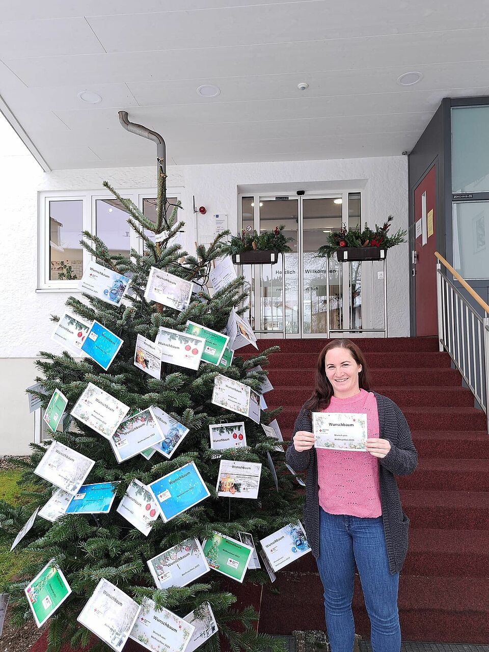 Der Wunschbaum, der seit 2020 alljährlich in der Adventszeit vor dem Haus aufgestellt ist, ist fast schon so etwas wie eine liebgewordene Tradition. „Viele Oberstdorferinnen und Oberstdorfer sowie Angehörige haben uns schon gefragt, ab wann es denn wieder die Wunschzettel zum Abholen gibt“, freut sich Melanie Engel. „Jetzt, in der Adventszeit, ist es wieder so weit: der Baum steht und ist bestückt mit vielen Wunschzetteln, auf denen die Seniorinnen und Senioren ihre kleinen Wünsche notiert haben. Wir haben einmal ein bisschen gespitzelt und gesehen, dass heuer beispielsweise ein Märchenbuch, ein Pullover, ein T-Shirt, Hausschuhe, eine Kuscheldecke, ein Kalender der Alpen, eine Flasche Rotwein oder selbst gebackene Laible, also Plätzchen, genannt wurden.“ Auch Kuschelsocken, etwas hübsches Selbstgestricktes, Duftkerzen, Tees, wohlriechende Aromaöle oder Ähnliches seien immer eine gute Idee.