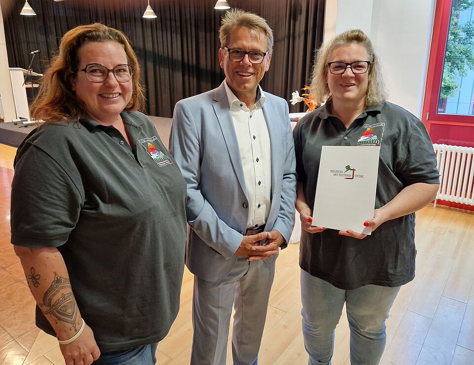 Stiftungskurator Jürgen Baunach übergab die Stiftungsurkunde vor wenigen Tagen an Katrin Wassermann, die Leiterin der Wärmestube mit Übernachtungsstelle, und ihre Mitarbeiterin, Hauswirtschafterin Alexandra Lingenhöl. Der großzügige Betrag wird für den Unterhalt des Foodtrailers sowie für die Anschaffung von Lebensmitteln, Hygieneartikeln u.v.m. verwendet, die zum Betrieb des Anhängers benötigt werden. Mit ihm fahren Mitarbeitende der Wärmestube jeden Sonntag zu einer städtischen Obdachlosenunterkunft in Kempten, um auch den dortigen Bewohnerinnen und Bewohnern die Möglichkeit zu geben, in den Genuss einer frisch zubereiteten warmen Mahlzeit zu kommen. Zum Preis von 1,50 Euro erhalten sie eine Hauptspeise mit Salat oder Suppe oder Dessert. Je nach Verfügbarkeit werden außerdem kostenlos Waren des täglichen Bedarfes, wie etwa Hygieneartikel oder länger haltbare Lebensmittel vergeben. Im Durchschnitt nutzen 30 Personen dieses Angebot. Katrin Wassermann bedankte sich im Namen des BRK Oberallgäu sehr herzlich für die großartige Unterstützung.