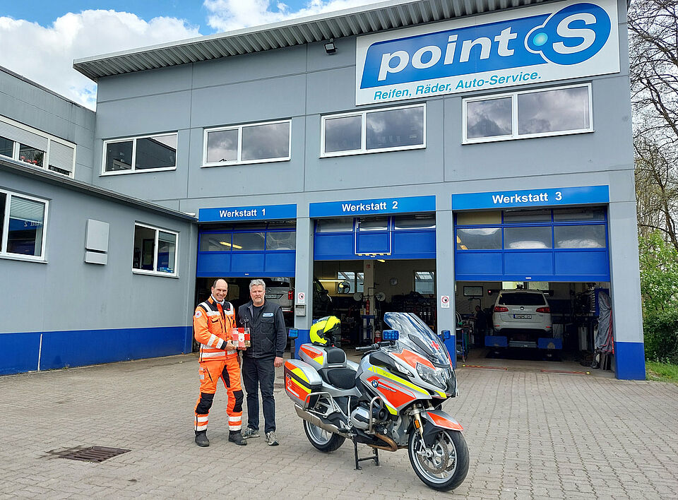 Die Motorradstreife der BRK-Bereitschaften Oberallgäu freut sich über eine Spende in Höhe von 550 Euro, die pünktlich zum Saisonstart von der Firma Reifen Schubert in Sonthofen übergeben wurde. Der Betrag stammt aus einer Spendensammelbüchse, die das ganze Jahr über im Wartebereich der Firma steht. Kundinnen und Kunden können dort freiwillig zugunsten der Motorradstreife spenden.