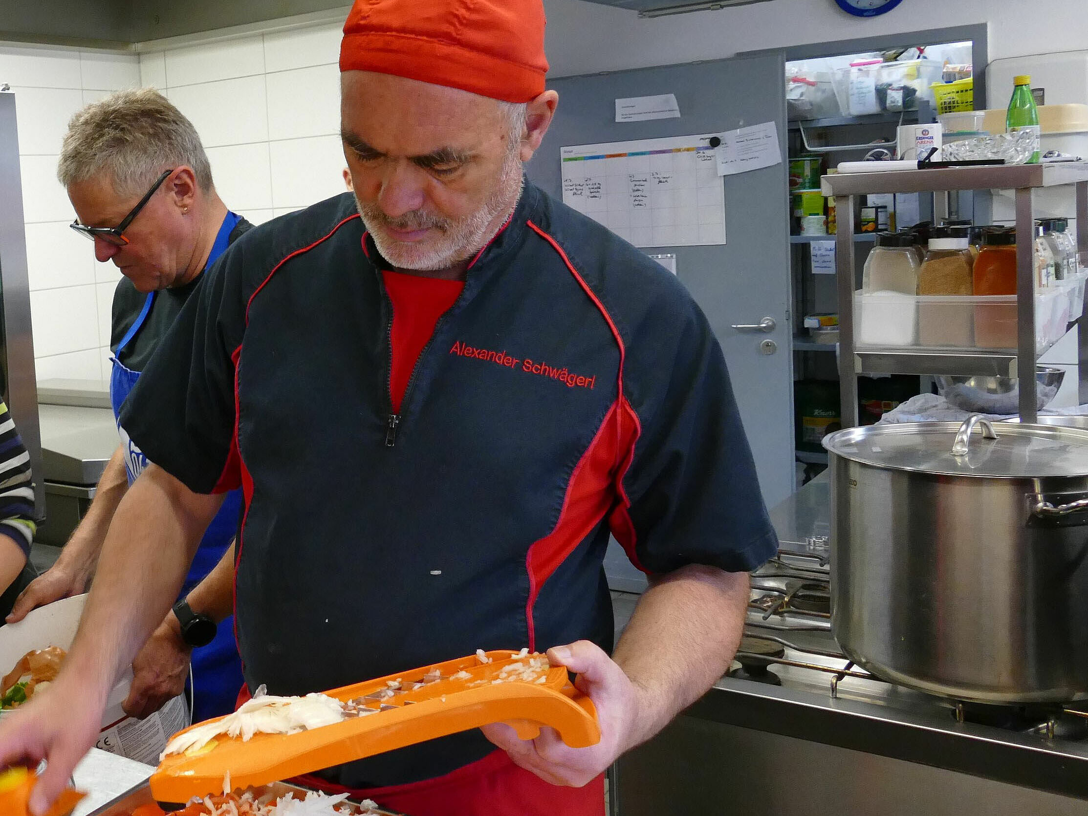 Elf Mitglieder des Förderkreises Humanität e.V. waren jüngst zum wiederholten Male in der Wärmestube des BRK in Kempten zu Besuch. Sie kochten gemeinsam mit Alexander Schwägerl, Kreisgeschäftsführer des BRK Kreisverbandes Oberallgäu, für die Gäste der Einrichtung und halfen mit, wo es ging. Der Förderkreis übernahm sowohl die Kosten für die Speisen als auch für Kaffee und Kuchen.