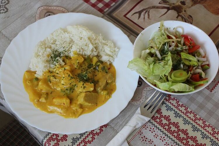 Die Spendenaktion – alle Speisen sind für die Gäste kostenlos - ist mittlerweile schon zur Tradition geworden. Sie fand in diesem Jahr bereits zum elften Mal statt. Das Menü bestand heuer aus einem winterlichen Maronengulasch mit Preiselbeeren, Haselnussspätzle und Zimtrotkraut. Als Dessert gab es Blechkuchen mit Vanillesoße.